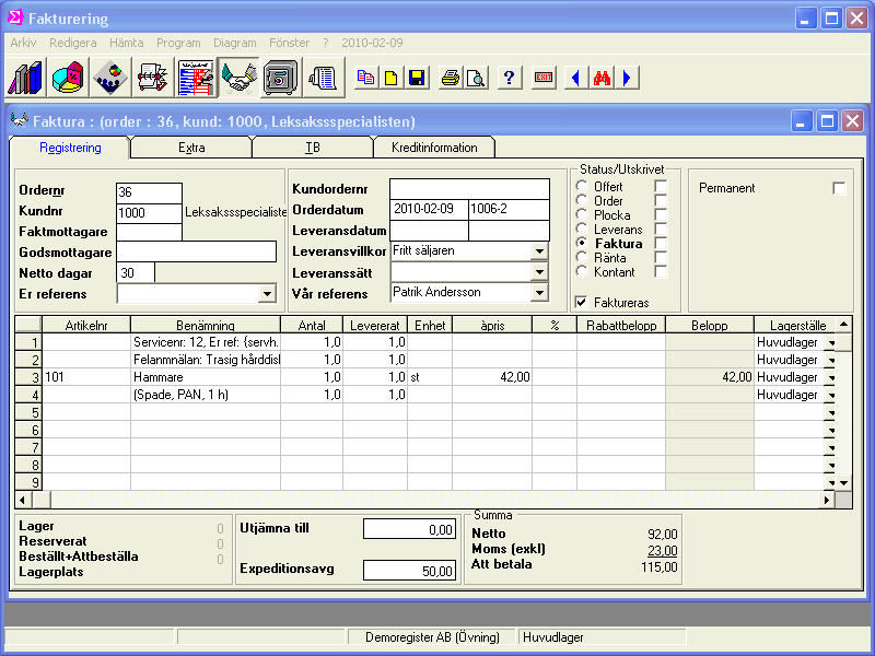 När flera fakturamottagare anges skapas det en faktura för varje fakturamottagare. Om man anger Fakt1 = "Leksakspecialisten" och Fakt2 = "Kontorsbutiken" så skapas en order i Avance med Kundnr = "Leksakspecialsten" och Fakturamottagare = "Kontorsbutiken".