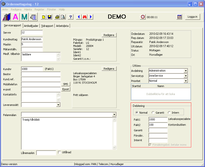 Spara FDTService.ini och starta FDT Service. I FDT Service lägger man sedan till vilken fakturamottagare som ska betala delar av kundens/fakturamottagare 1:s service:
