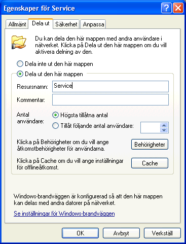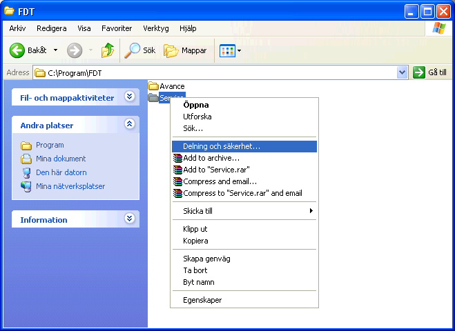 - 3. Dela sedan ut mappen i ett nätverk så att de arbetsstationer som ska köra FDT Service kommer åt mappen.