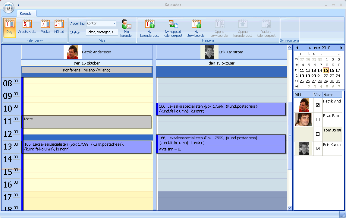 I kalendern kan arbetet planeras och struktureras mellan olika resurser och avdelningar. Serviceordrar kan enkelt kopplas till kalendern vilket är en stor fördel vid tidsplanering.