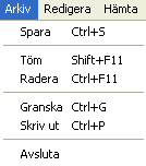 Beskrivning: Med ovanstående kommando stängs alla aktuella poster och programmet avslutas. Om ej sparade poster existerar kommer programmet att fråga om ni vill spara dem innan det avslutas.