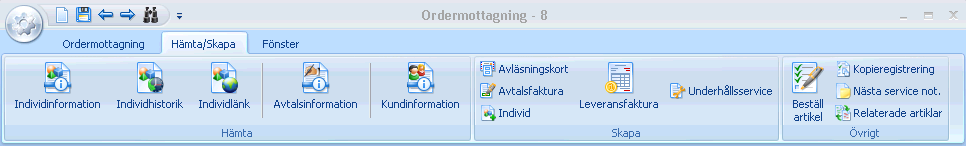 Ordermottagning-menyn är den första menyn som användaren möter.
