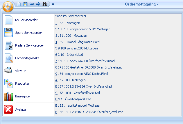 Radera Serviceorder: Raderar serviceorder.