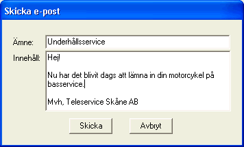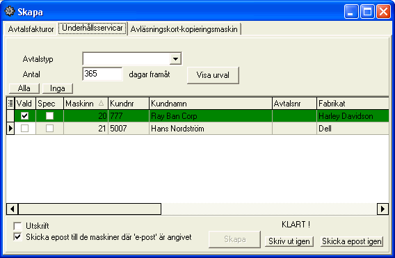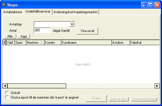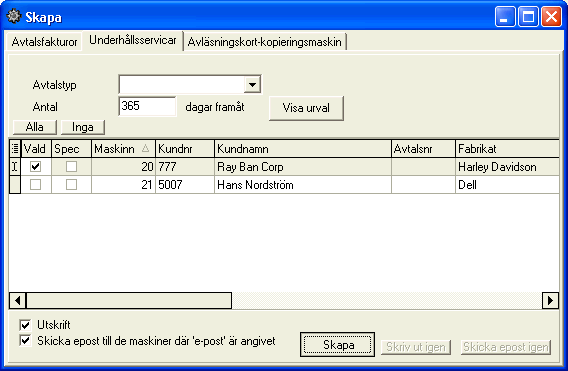 Markera boxen Utskrift för att skriva ut serviceorder för vald underhållsservice.