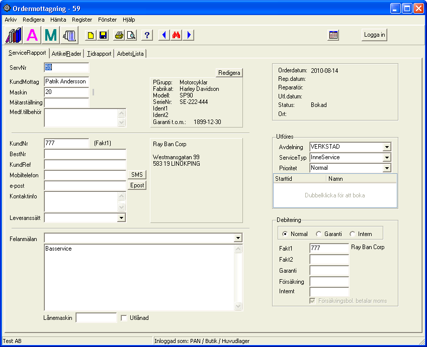 Serviceorder skapas nu med status 'Bokad' och den "Text på felanm" som angivits i Individregistret under fliken Service.
