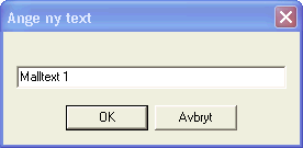 För att byta namn på en malltext, klicka på Byt text och skriv det nya namnet i fältet. Slutför genom att klicka OK.
