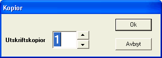 För att programmet ska fråga hur många kopior av rapporten som ska skrivas ut måste rutan Fråga markeras. Om rutan Fråga markeras kommer följande fönster att visas vid utskrift: