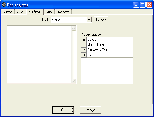 I basregistret ska basinformation och standardinställningar för programmet göras. Basregistret är endast tillgängligt för programmets administratörer (ställs in som grupp '0' i Avance verktyg).
