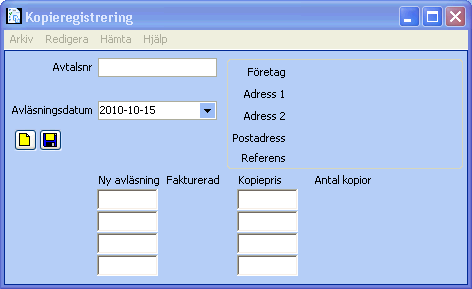 Klicka på kopieregistrering för att enkelt registrera information om kopior för en kopieringsmaskin.