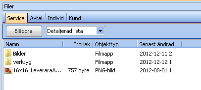 Ny modul: Filer. Bifoga filer av valfritt format med en Serviceorder. Det går även att bifoga filer på Individ, Avtal och Kund. Det innebär att man kan bifoga en fil på en specifik kund. Denna fil återfinns då på varje serviceorder som skapas på denna kund.